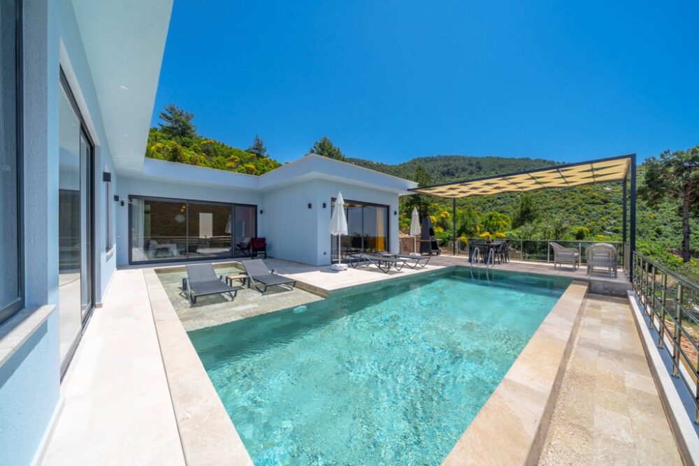 New for 2022, Villa Amaranda in the peaceful setting of Saribelen, approx 12kms from Kalkan and roughly a twenty minute drive. This brand new villa is now available for rent. Built and furnished to a very high standard you will not be disappointed.